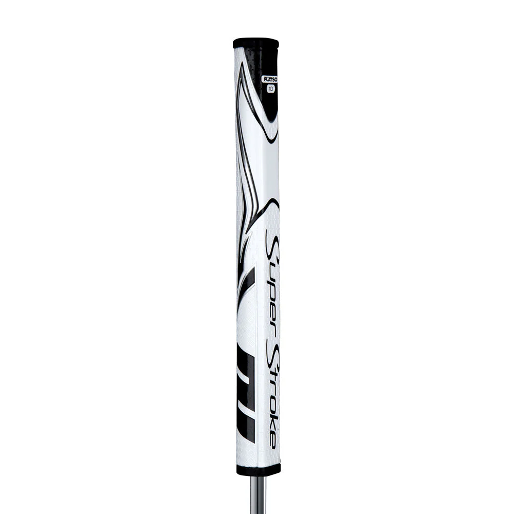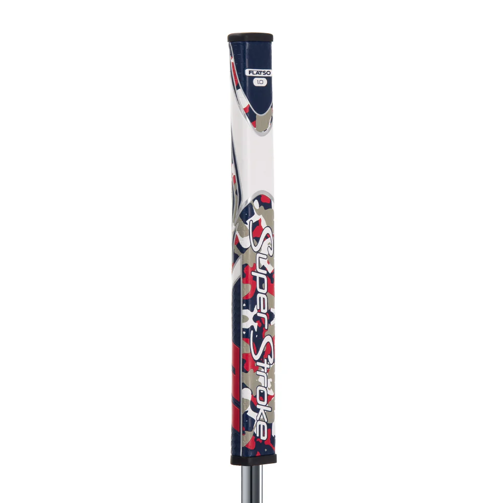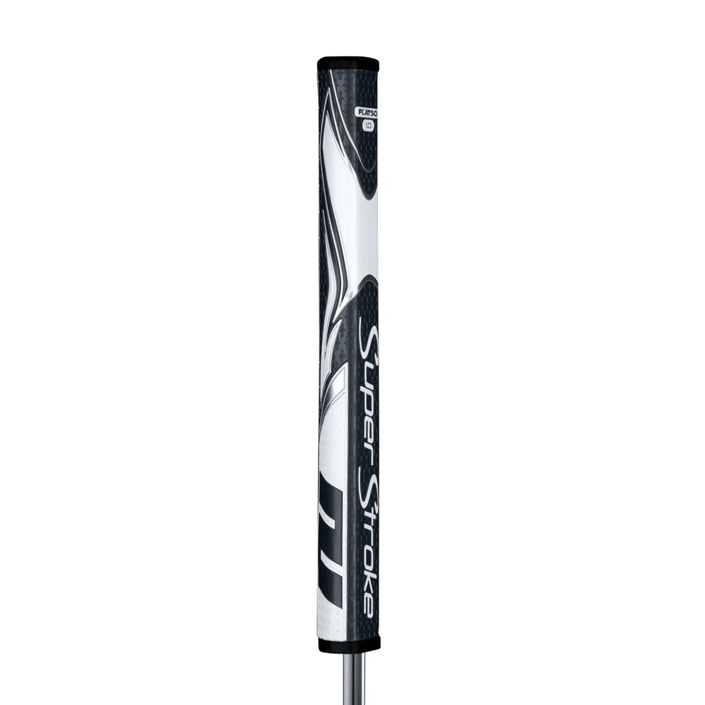 The SuperStroke Flatso™ putter grip features a distinct pentagonal “Flatso” profile: a wide, flat front grip shape with five pronounced edges.