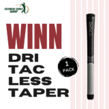 Winn’s Dri-Tac Less Taper (LT) was meticulously crafted with a less tapered profile, emphasizing a more substantial lower hand. This design element enhances control and promotes a gentler grip. The Dri-Tac material delivers the same outstanding shock absorption, non-slip comfort, and performance characteristics of all Dri-Tac grips.
